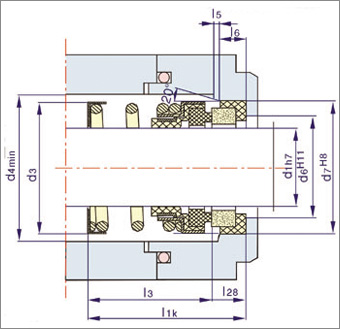 108系列采用橡膠波紋管做次級(jí)密封,并兼?zhèn)鬟f扭矩力,通過(guò)雙補(bǔ)償環(huán)背靠組對(duì),可成為HQ208密封,常用于潛水泵。